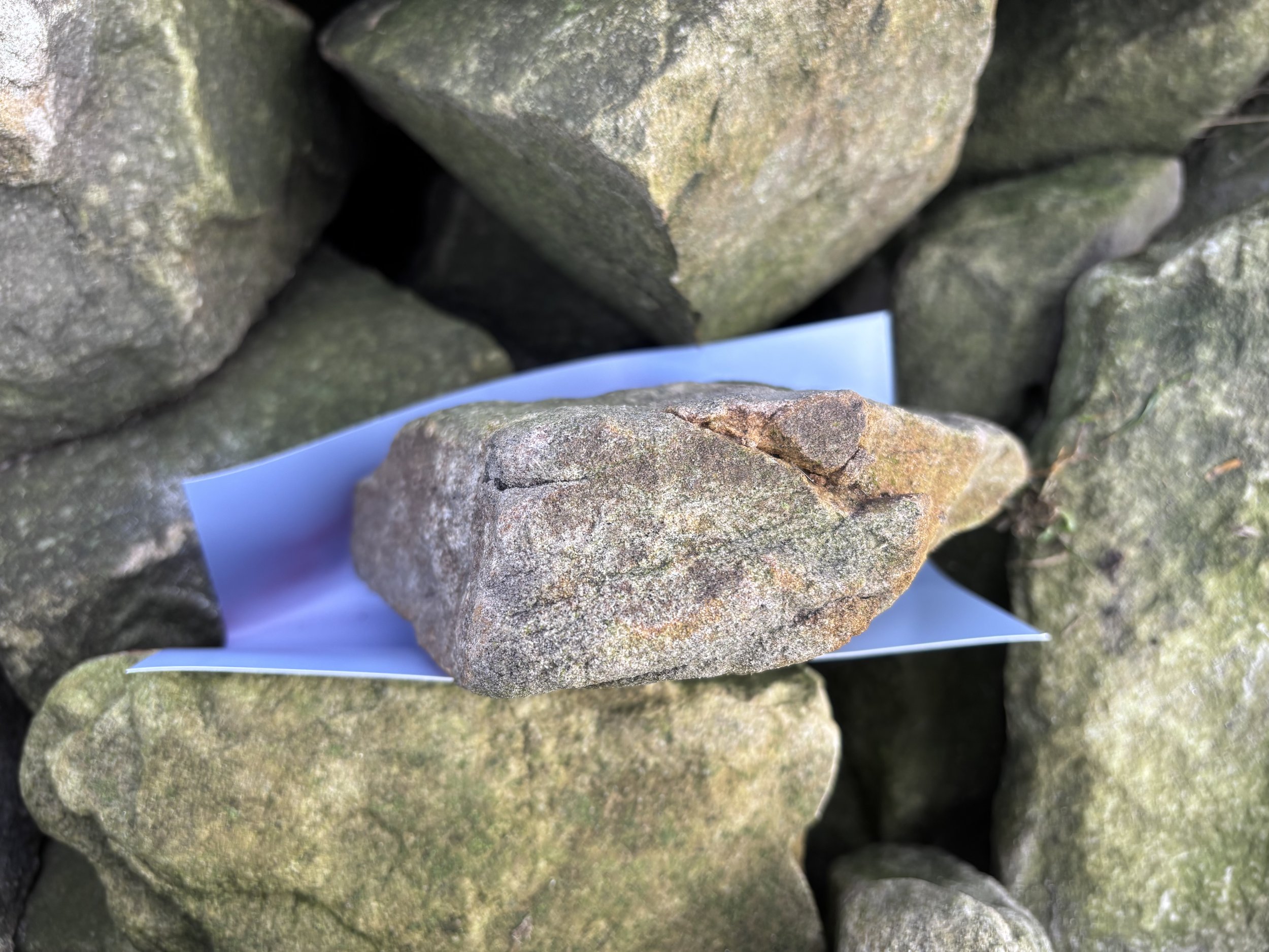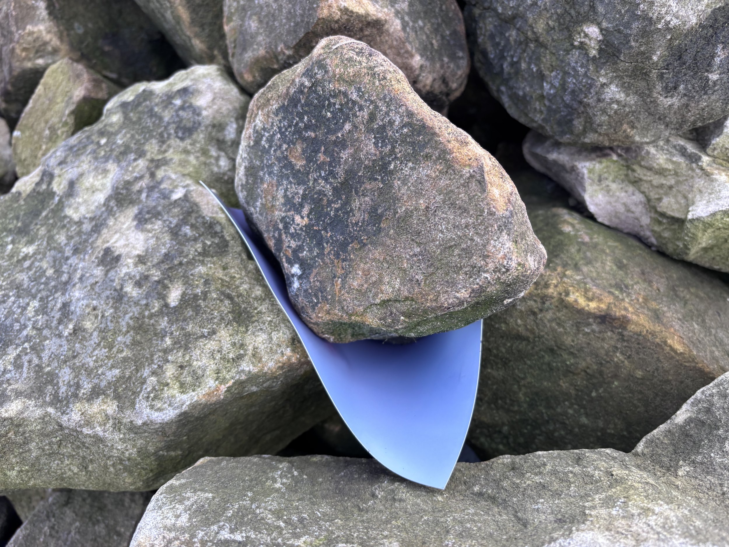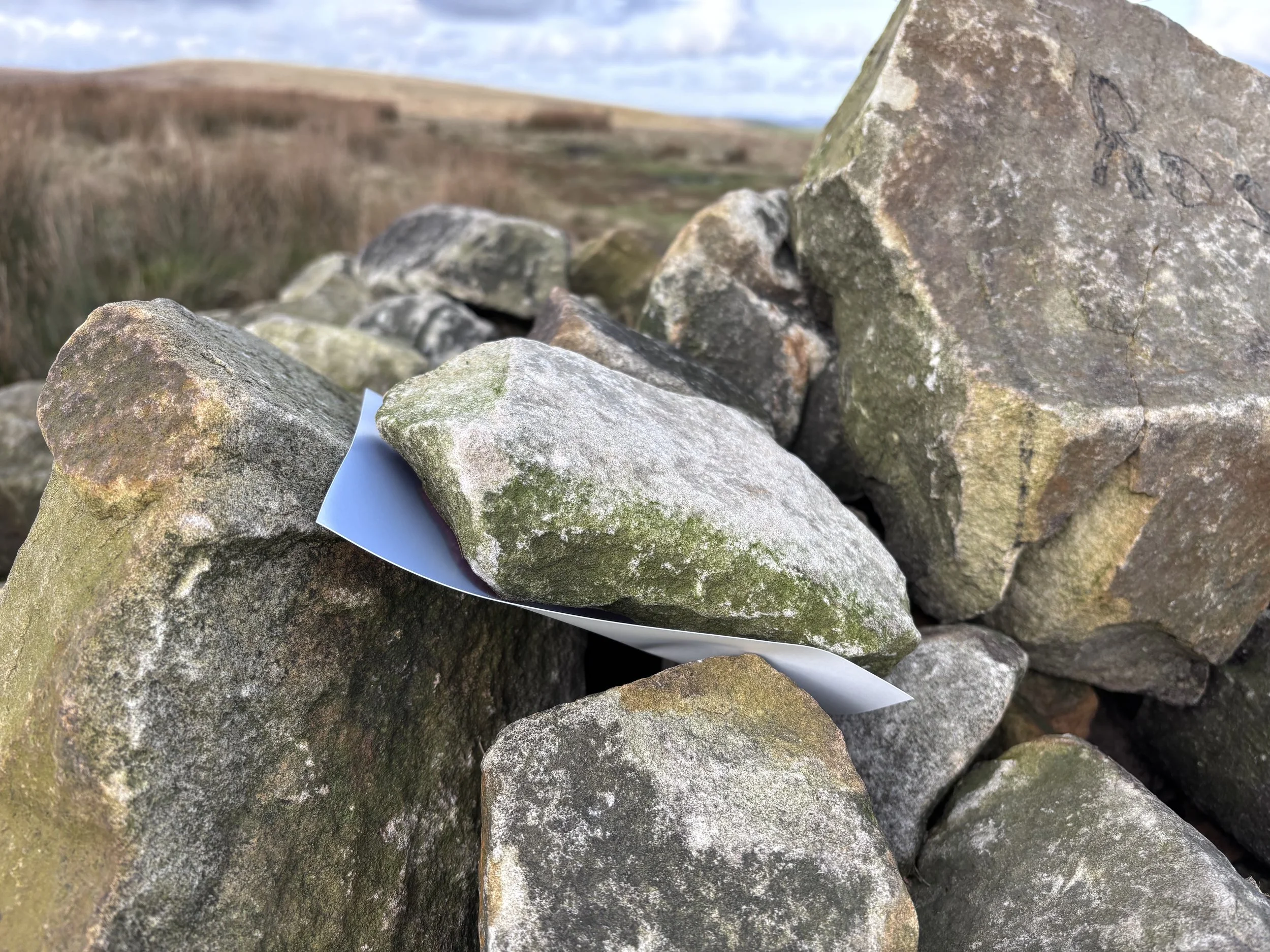 As seen in the images above, photographic paper has been sandwiched between stones on the cairn and left to expose in the sunlight together. The resulting images show the in-betweenness of the stones, manifesting the thresholds and energies between things. I’ve been reflecting on this process as an alternative way of photographing a cairn, and treating the individual prints as part of a multiplicity, in the same way that the individual stones are to the cairn.